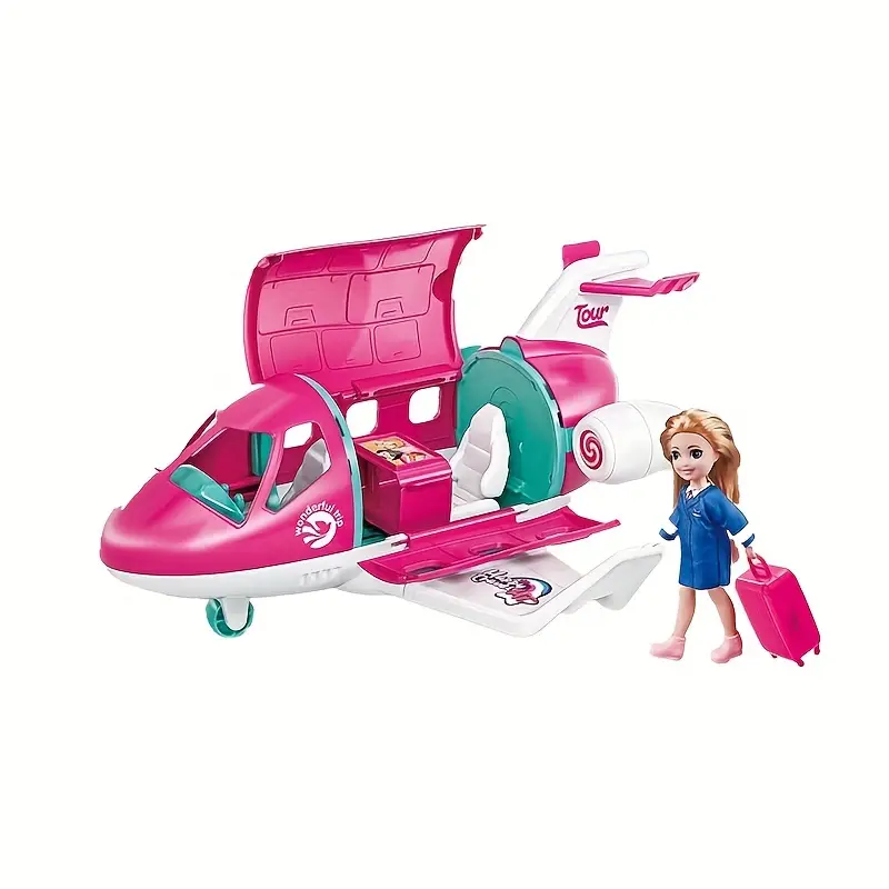 1 Set Fashion Doll Airplane Accessories Dream Vehicle Trip Pilot Princess Doll Pink Color Playset Including Traveling Suitcase And Puppy Pet For Kids And Up Toys. (Color Box)